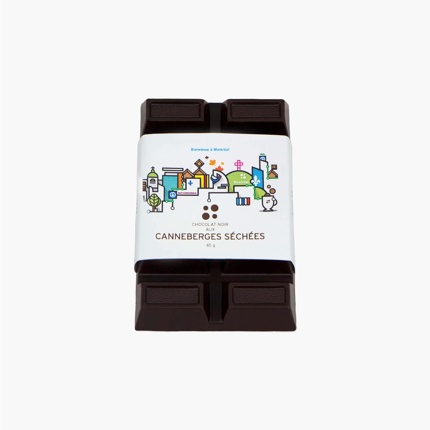 chocolat noir avec canneberges séchées – étiquette Souvenir de Montréal